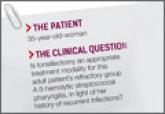 ► Is tonsillectomy an appropriate treatment modality for this adult patient’s refractory group A ß-hemolytic streptococcal pharyngitis, in light...