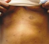 Three weeks ago, a 25-year-old woman noticed an asymp¬tomatic lesion of unknown origin on her chest. Since then, smaller versions have appeared in...