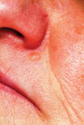 A 53-year-old man self-refers to dermatology for evaluation of a lesion on his left maxilla that has been basically unchanged for several years....