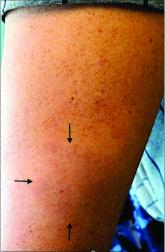 A White male presented with a 1½-year history of a progressive hypoesthetic annular, hyperpigmented plaque on the upper arm