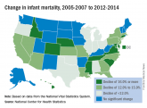No state reported a significant increase in infant mortality between 2005-2007 and 2012-2014.