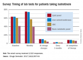Despite the lack of agreement among dermatologists surveyed, “less monitoring is probably required.”