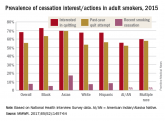 Just over 55% of adult cigarette smokers made an attempt to quit in the past year, and 7.4% said that they recently quit.