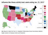 The level of influenza-like illness activity was highest in five states for the week ending Jan. 21, compared with three states the week before,...