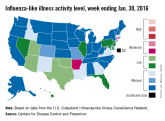 The proportion of U.S. outpatient visits for influenza-like illness (ILI) crept up from 2.1% to 2.2% for the week ending Jan. 23 – week 15 of the...