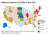 New York had more than three times as many $1 million–plus malpractice awards as any other state in 2014, according to data from the National...