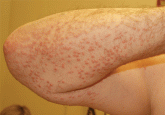 A man with a total cholesterol level of 1,045 mg/dL and a hemoglobin A1c of 12.6% presents with a new rash.