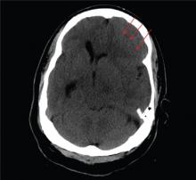Since the MRI results were not immediately available for review, the ED staff obtained noncontrast CT of the head. The ED provider notes that it “looks like there is something there causing significant mass effect and shift.”