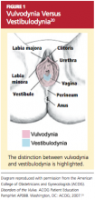 Vulvodynia, which affects 16% of women, refers to vulvar pain, usually described as a burning or cutting sensation, with no significant physical changes seen on examination.7,8,14 Vulvodynia may be localized or generalized to the entire vulva and provoked or unprovoked. Vestibulodynia, which is a subtype of vulvodynia, refers to unexplained pain in the vestibule of the vaginal introitus; the only physical finding may be erythema. Provoked vestibulodynia is the most common form of introital pain, affecting 3% to 15% of women.15-17