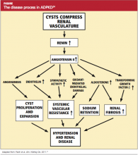 The patient is started on an ACE inhibitor, scheduled for fasting lipid screening, and referred to a nephrology practice for disease management. As research and investigation of possible treatment options for ADPKD are ongoing, the patient may benefit from participating in a new research protocol.
