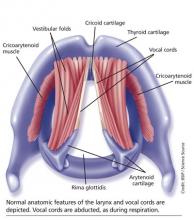 Disagreement persists with regard to the preferred name for the condition. Because numerous disorders involve abnormal vocal cord function, Christopher proposed moving away from the broad term VCD and toward a more descriptive term: paradoxical vocal fold motion (PVFM) disorder.10 Interestingly, use of the two terms seems to be divided along specialty lines: VCD is preferred by allergy, pulmonology, and mental health specialists, while PVFM is favored by otolaryngology specialists and speech-language pathologists.11