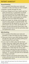 Two exercises—“paused breathing” and “belly breathing”—can be used by patients to learn how to relax the vocal cords (see “Patient Handout”). Patients should practice these exercises three times a day so that they can be easily recalled and performed during VCD episodes.