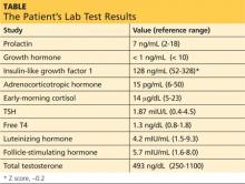 He is a happily married engineer with two healthy children and reports that he feels well except for this “brain tumor” finding that has been a shock to him and his family. There is no family history of pituitary adenoma or multiple endocrine neoplasia syndrome.