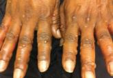 A 63-year-old man developed a pruritic burning rash involving the face, trunk, arms, and legs of 6 days’ duration. His medical history included a heart transplant 6 months prior to presentation, type 2 diabetes mellitus, and chronic kidney disease. He was taking antirejection therapy with mycophenolate mofetil (MMF), prednisone, and tacrolimus.