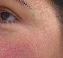 Photographic analysis at the 1-month follow-up revealed that fine lines, smoothness, tightness, and brightness improved in about half of the patients by at least 40%. Periorbital photographic results demonstrated a mean improvement in fine lines of at least 30%, with almost all patients showing clinically significant improvement. A 6-month follow-up study of the patients showed persistence of the improvement.
