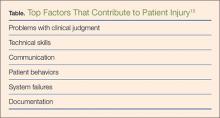 A number of closed-claim databases attempted to identify the characteristics of patient encounters that can lead to malpractice claims, including patient conditions and sources of error. Diagnostic errors have consistently been found to be the leading cause of malpractice claims, accounting for 28% to 65% of claims, followed by inappropriate management of medical treatment and improper performance of a procedure.7,13-16 A January 2016 benchmarking system report by CRICO Strategies found that 30% of 23,658 medical malpractice claims filed between 2009 through 2013 cited failures in communication as a factor.17 The report also revealed that among these failed communications, those that occurred between health care providers are more likely to result in payout compared to miscommunications between providers and patients.17 This report further noted 70% to 80% of claims closed without payment.7,16 Closed claims were significantly more likely to involve serious injuries or death.7,18 Leading conditions that resulted in claims include myocardial infarction, nonspecific chest pain, symptoms involving the abdomen or pelvis, appendicitis, and orthopedic injuries.7,13,16