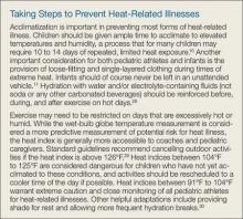 Pediatric heat-related illnesses can usually be prevented if appropriate precautions are taken (see “Taking Steps to Prevent Heat-Related Illnesses” box). In lieu of prevention, early recognition and treatment of heatstroke in children may drastically reduce life-threatening complications related to multisystem organ dysfunction. Management of heatstroke rests primarily on prompt initiation of rapid cooling measures and evaluation for organ dysfunction.