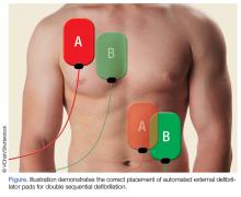 Double sequential defibrillation, also known as double simultaneous defibrillation, is the use of two defibrillators simultaneously to deliver the maximum energy that may be necessary to treat refractory V-fib. In this review, we define refractory V-fib as V-fib/pulseless V-tach that does not revert to a life-sustaining rhythm after three or more shocks from a single defibrillator plus administration of at least a single dose of intravenous (IV) epinephrine and/or amiodarone.