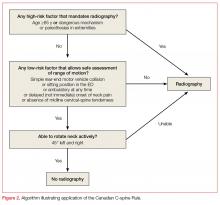The Canadian C-spine Rule (CCR), described in Figure 2, is more complex than the NEXUS criteria, but there are data to suggest it performs better in head-to-head evaluations.18