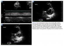 While inferior vena cava (IVC) ultrasound has been shown to be a pre-heart/lung assessment of cardiopulmonary interactions that predicts volume responsiveness, the IVC is also a good predictor of right atrial (RA) pressure. 35 If the IVC is dilated and lacks respiratory variation, the patient likely has an elevated RA pressure, which is most likely transmitted from an elevated RV pressure ( Figure 9a ). However, compliance of the RA, RA pressure and, by extension, IVC prediction of that RA pressure, may underestimate the degree of RV pressure or afterload.