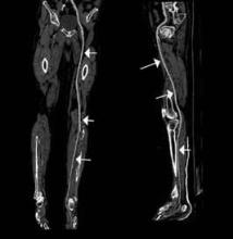 An emerging clinical situation in which contrast-enhanced cross-sectional imaging may supplant the need for arterial puncture and digital subtraction angiography is multiligament trauma to the knee. When significant kinetic force is applied to the knee, the joint is at risk for translocation and/or dislocation, with resultant injury to the surrounding soft-tissue envelope and potential trauma to the neurovascular structures around the knee. In this type of injury, cross-sectional imaging is routinely ordered to further evaluate and classify trauma, revealing potentially treatment-altering information concerning the integrity of the vascular structures with minimal risk to the patient (Figure 1).