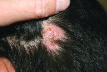 The treatment choice is oral terbinafine for tinea capitis with kerion, a scalp dermatophyte infection with a concurrent inflammatory process. Tinea capitis is a very common infection with the peak occurrence at age 3-7 years. Tinea capitis is caused by a variety of dermatophyte species, most commonly by Trichophyton tonsurans or Microsporum canis. T. tonsurans is an endothrix infection, invading the hair shaft and superficial hair while M. canis is an ectothrix infection. T. tonsurans has a person to person transmission; in contrast, M. canis is a zoonotic infection most commonly acquired from infected pets.1 The epidemiology of tinea capitis is affected by multiple factors, including immigration patterns. For example, in Montreal, a study showed a sixfold increase of African dermatophyte species, M. audouinii and T. soudanense.2 Similarly, global variation has increased prevalence of T. violaceum, more commonly found in Europe and Africa, which has been seen in immigrant populations in the United States.1 Kerion is thought to be a hypersensitivity reaction to dermatophytes. Often, misdiagnosis of kerion can result in unnecessary antibiotic prescription and delays in initiation of antifungal therapy.3,4