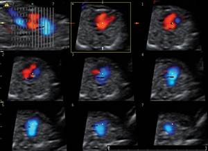 Indeed, significant improvements in the overall computing capability of modern ultrasound equipment, in three-dimensional color ultrasonography, and in ultrasound image resolution – as well as specific new technologic developments such as tomographic imaging and spatiotemporal image correlation – have opened the door to first-trimester cardiac screening.