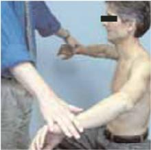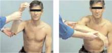 The crank test is used to identify chronic labral injury, whereas the active compression test25 (Figure 4) indicates labral injury if pain is deep in the shoulder.