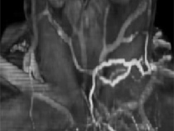This 3D reconstruction of CT images shows the extensive collateral circulation on the left, compared with the right.