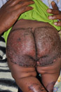 The infant had the classic acrodermatitis enteropathica rash (FIGURES 1 and 2) caused by a zinc deficiency. Treatment is zinc supplementation and a diet including zinc.