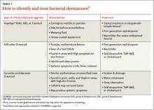 There are several types of bacterial dermatoses: impetigo, folliculitis, furuncles, carbuncles, abscesses, and cellulitis. Most are caused by group A beta-hemolytic Streptococcus or S aureus and can be easily treated, but identification of the pathogen is needed to facilitate healing and a safe return to play (TABLE 1).27
