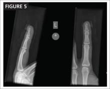 X-rays (FIGURE 5) reveal a distal tuft fracture. The patient’s main concern is the pain, and he asks what you can do to relieve it.