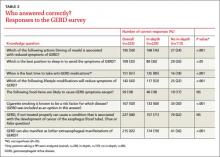 Study limitations. We did not validate our survey against other surveys or within our patient population; additional efforts are therefore warranted in this regard. Future studies might also explore how duration and severity of symptoms prior to patient-physician discussions, socioeconomic status, and education level influence the relationship between perception of care and understanding of GERD. A follow-up survey would help to define whether these discussions translate into improved disease management.