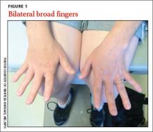 Her blood pressure and vital signs were within normal limits. Physical exam was notable for subtly coarse facial features and broad fingers (FIGURE 1).
