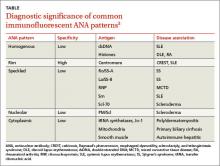 Think systemic lupus erythematosus when a patient has a photosensitive butterfly rash, arthralgia, pleuritic chest pain, fever, or urine sediment consistent with nephritis. Most systemic autoimmune diseases have a highly characteristic profile of autoantibodies to cellular antigens. A patient’s clinical features and ANA fluorescence pattern should direct additional testing.