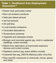 Over the past 14 years, > 2.5 million U.S. military personnel and civilian contractors have been deployed as part of 3 major military operations: OEF in Afghanistan (2001 to present), OIF in Iraq (2003 to 2010), and OND in Iraq (2010 to present). 17,18 Deployed personnel encounter a wide variety of inhalational exposures that include desert dust particulate matter, burn pit combustion products, environmental tobacco smoke, vehicular diesel exhaust, debris from detonations and explosions, and other unique or specific job-related exposures (Table 1). 19,20