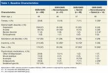 Most excluded patients had been prescribed an SSRI or SNRI by a non-VA provider or another VA facility and were transferring care to SAVAHCS; they were not true “new starts” on an SSRI or SNRI for PTSD.Baseline characteristics revealed no significant differences between groups in age or comorbid depression, schizophrenia, or SUDs (Table 1).