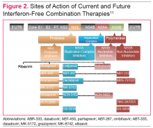 The first DAAs in use were the viral nonstructural protein 3/4A (NS3/4A) serine protease inhibitors (PIs) boceprevir and telaprevir, which were used with PEG and RBV for patients with HCV genotype 1 infection. This combination therapy improved SVR rates from about 26% to 50% in patients with HCV genotype 1 in the VA. 3,4 However, due to the significant AEs with these combinations, relatively few patients were treated.