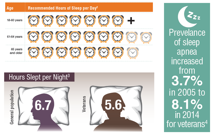 Sleep is an essential need, and insufficient sleep is associated with a wide range of adverse outcomes. Service members are especially at risk for acquiring sleep disorders due in part to the sometimes austere living conditions and the irregularity of active-duty sleep/wake schedules. For both active-duty service members and veterans, posttraumatic stress disorder or other mental health diagnoses can further exacerbate poor sleep hygiene and sleep disorders. Poor sleep hygiene and sleep disorders have been shown to be related to other health care problems, including obesity, hypertension, diabetes mellitus, cardiovascular disease, and stroke.