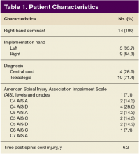 Limitations of the study included the duration of treatment of eight 30-minute sessions per week over a 6-week period. A longer treatment duration could result in repetition-related injuries and should be tested in future trials. Finally, the sample size of this study was relatively small. Future studies of different treatment frequency, longer duration of use and monitoring, and using a larger sample size are suggested. An efficacy study of this device using a randomized controlled design is indicated. As people with cervical SCI rank upper-extremity dysfunction as one of the top impairments that negatively impacts QOL, rehabilitation strategy to improve such functions should continue to be a research priority.2