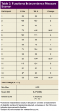 Skin integrity of all subjects was maintained throughout the study. One subject had a right-elbow wound before the intervention, which was unchanged at the end of the study. After 6 weeks of experimental intervention, there was no wrist or finger joint deformity noted and no increase in pain level except for 1 subject who reported increased pain that was unrelated to use of the device. No occurrence of autonomic dysreflexia was recorded during the use of FES Hand Glove 200 (Table 2).