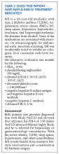 NASH is more frequent in those with liver enzyme elevations or with an elevated FIB-4 and is associated with a long-term risk of cirrhosis. These patients merit referral to hepatology or gastroenterology for further evaluation and consideration of a liver biopsy to identify NASH. Patients with likely NAFLD without liver enzyme elevations can be further evaluated with FIB-4 scores to assess their probability of advanced liver fibrosis and potential need for referral to hepatology or gastroenterology.