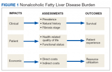 Nonalcoholic fatty liver disease (NAFLD) is an umbrella term that covers a spectrum of phenotypes ranging from nonalcoholic fatty liver or simple hepatic steatosis to nonalcoholic steatohepatitis (NASH) defined by histologic findings of steatosis, lobular inflammation, cytologic ballooning, and some degree of fibrosis.1 While frequently observed in patients with at least 1 risk factor (eg, obesity, diabetes mellitus [DM], dyslipidemia, hypertension), NAFLD also is an independent risk factor for type 2 DM (T2DM), chronic kidney disease, and cardiovascular disease.2 At early disease stages with absence of liver fibrosis, mortality is linked to cardiovascular and not liver disease. However, in the presence of NASH, fibrosis progression to liver cirrhosis, or hepatocellular carcinoma (HCC) represent the most important liver-related outcomes that determine morbidity and mortality.3 Mirroring the obesity and T2DM epidemics, the health care burden is projected to dramatically rise.