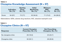 Overall, the average score on the clozapine knowledge assessment portion of the survey was 85.6%. The most commonly missed questions concerned the minimum ANC required to initiate clozapine and the appropriate starting dose for clozapine (Table 4). No significant difference was seen in clozapine utilization based on the clozapine knowledge assessment score when HCPs who scored≤ 60% were compared with those who scored ≥ 80% (P = .29).