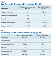 This survey targeted VHA HCPs who were licensed to prescribe clozapine to identify barriers and facilitators of use, along with HCP characteristics that may impact clozapine utilization. The findings of this study indicate that even though HCPs may perceive many legitimate barriers to clozapine prescribing, such as the frequent laboratory monitoring requirements, some factors may increase their willingness to prescribe clozapine. Many of these facilitators involve addressing logistical concerns and the administrative burden that accompanies clozapine use. These findings echo previous studies done within and outside the VHA.8,9