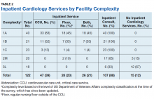We were specifically interested in inpatient cardiology services and whether facilities provided only consult services or inpatient services led by a cardiology attending. Having inpatient services does not exclude the availability of consult-liaison services (Table 2).