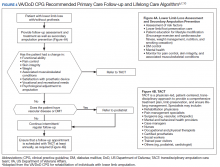 Integration of services and resource collaboration are additional key aspects of the ASoC (Figure 3). In order to be successful, care of the veteran facing potential amputation or living with the challenges postamputation must be well-integrated into the broader care of the individual. Many veterans who undergo amputation have significant medical comorbidities, including a high prevalence of DM and peripheral vascular disease. Management of these conditions in collaboration with primary care and other medical specialties promotes the achievement of rehabilitation goals. Integration of surgical services and amputation prevention strategies is critical. Another essential element of the system is maintaining amputation specialty care team contact with all veterans with limb loss on at least an annual basis. A clinical practice guideline published in 2017 on lower Limb amputation rehabilitation emphasizes this need for an annual contact and includes a management and referral algorithm to assist primary care providers in the management of veterans with amputation (Figure 4).7