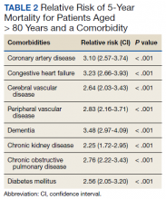 Treatment, complications, and 5-year mortality were recorded. A χ2 analysis with P value < .05 was used to determine statistical significance between individual risk factors and 5-year mortality. The relative risk of 5-year mortality was calculated by combining advanced age (aged > 80 years) with the individual comorbidities.