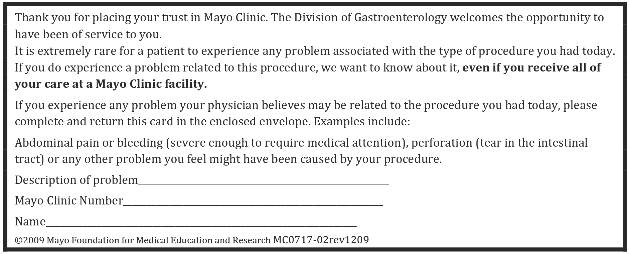 Our research personnel attempted to contact, by telephone, patients who had a gastrointestinal endoscopic procedure in one of our endoscopy units after at least 14 and no more than 90 days to inquire about the occurrence of adverse events. A scripted interview (Appendix A: www.cghjournal.org/article/S1542-3565(14)01390-1/fulltext) was used and calls were made only during business hours (between 9 a.m. and 5 p.m.).
