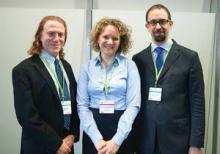 AGA Research Scholar Awardees: Robert Schwartz, M.D., instructor of medicine at Brigham and Women’s Hospital and postdoctoral fellow at MIT and Kara Gross Margolis, M.D., assistant professor of pediatrics at Columbia University Medical Center joined UEG Rising Star Harry Sokol, M.D., associate professor, gastroenterology department at Saint Antoine Hospital, AP-HP, in Paris as presenters at the 16th AGA-UEG (United European Gastroenterology) Scientific Exchange Program. The session took place in Berlin during the UEG Week in October.